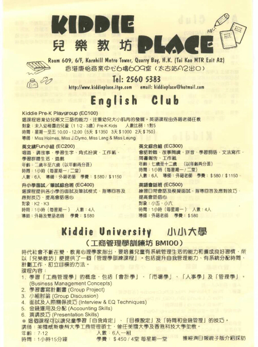 Page 1: English Club & Kiddie University