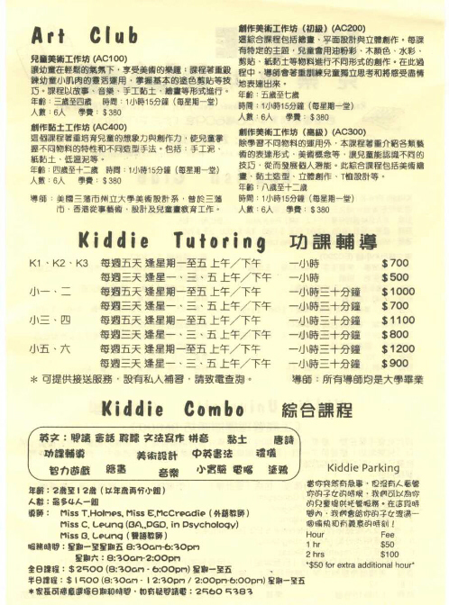 Page 2: Art Club, Tutoring & Kiddie Combo